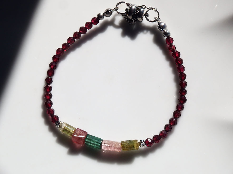 ルビーとルチルクォーツ、アメトリンにステンレスローズを添えて